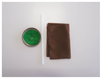Lege die Schlange aus Seidenpapier auf den Untersetzer. Nimm den Kunststoffstab und reibe ihn kräftig mit dem Fell oder Wolltuch. Lege das Fell oder Wolltuch weg. Führe die geriebene Seite des Kunststoffstabes langsam zur Schlange.