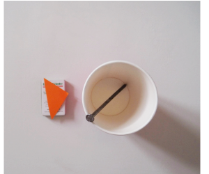 Vorbereitung: Nimm den Papierbecher und stich ein Loch in den Boden des Bechers.
