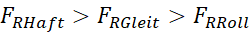 Beobachtet man die Reibungsarten auf einer gleichen Oberfläche, so ist die Haftreibung größer als die Gleitreibung und die Gleitreibung größer als die Rollreibung (